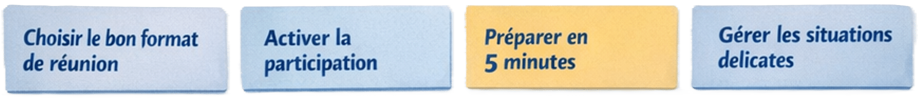 Structurer rapidement l’objectif, le cadre et le déroulé d’une réunion sans y passer des heures. - Utiliser 3 méthodes participatives simples, dès le lendemain
